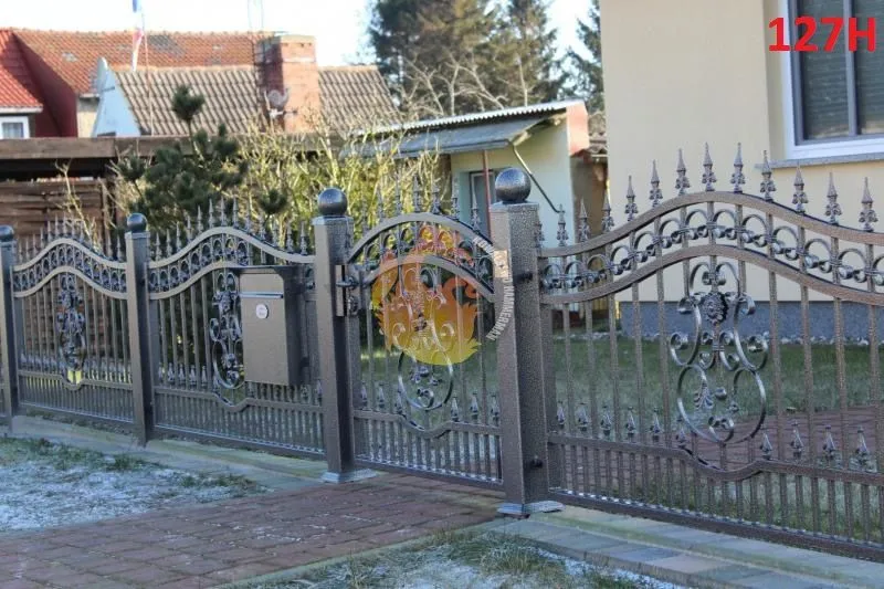 Zäune mit Bögen gibt es in vielen interessanten Designs und Formen. Unser Unternehmen ist in der Lage Ihnen Zäune, Tore und Pforten mit feinen oder prächtigeren Details anzubieten. Sie können sich für Zäune entscheiden, bei denen die Stäbe einen großen Abstand zueinander haben, wodurch der Raum optisch größer wirkt. Je nach Art des Grundstücks oder des Geländes kann zwischen verschiedenen Stabsabständen gewählt werden. Wer mehr Privatsphäre wünscht, sollte sich für geschwungene Zäune entscheiden, die stärker aufgebaut sind, um das Grundstück vor den Blicken von Passanten und neugierigen Nachbarn zu schützen. Die Spannweiten können auf spezielle Rahmen oder auf vorbereitete Metall-, Beton- oder Steinpfosten gesetzt werden. Für eine bessere Verstärkung lohnt es sich, ein Fundament in Betracht zu ziehen.